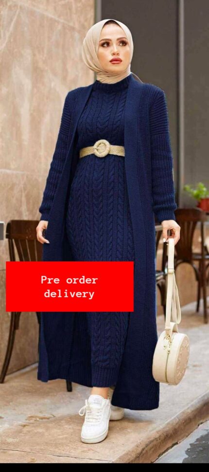 Tricot Knitted Fabric One Size Dress & Cardigan Set