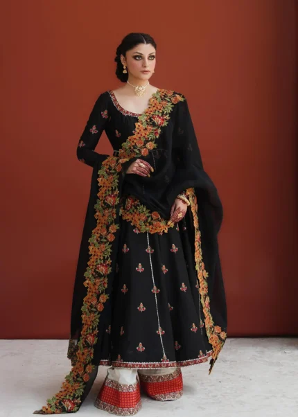 Vanya Embroidered Silk 3-Piece Suit with Crushed Sharara – Medium