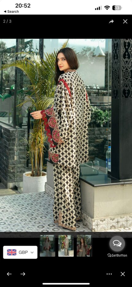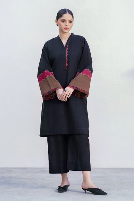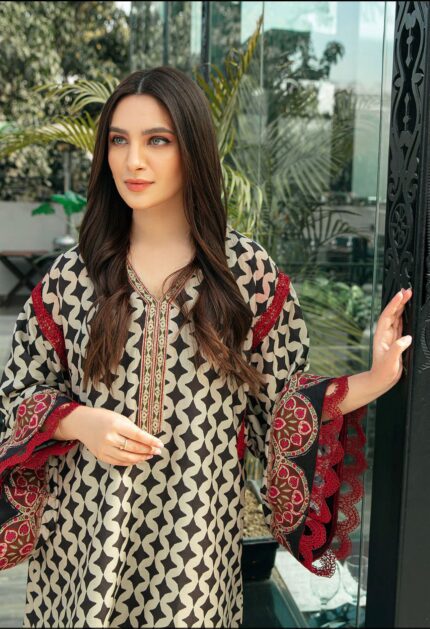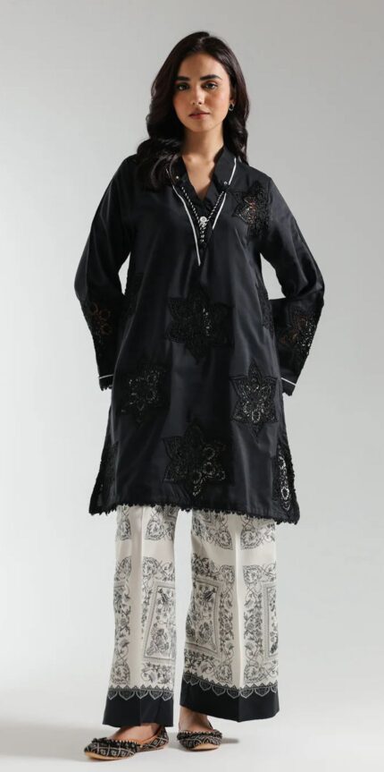Vanilla Ice Floral Embroidered Kurta with Printed Shalwar – XS