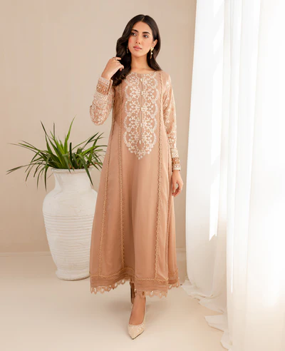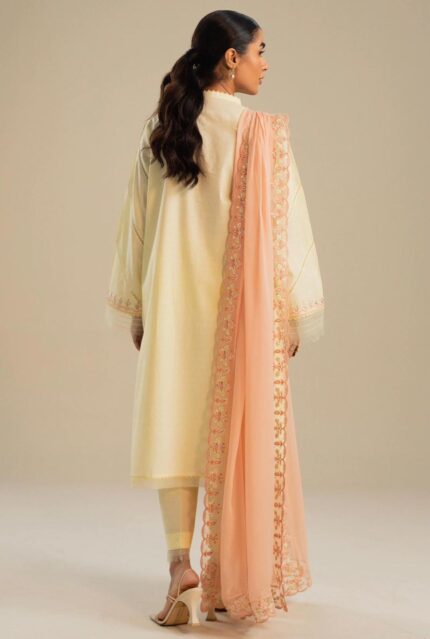 Zara Shajahan Long Straight Fit Kurta With Printed Chiffon Dupatta