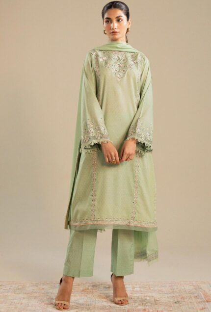 Zara Shajahan Celadon Green Long-Paneled Kurta With Soft Celadon-Hued Dupatta