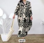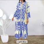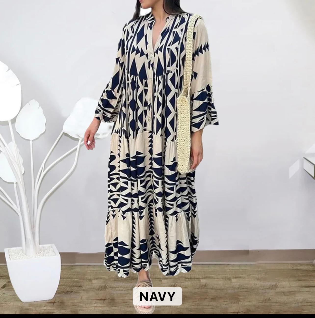 The stunning dress features a captivating blend of four colors: black, navy, blue, and green. This harmonious combination creates a visually striking and versatile piece that is sure to turn heads. The rich hues of black and navy provide a sophisticated base, while the vibrant blue and green accents add a pop of color and personality. This dress is a perfect choice for those looking to make a stylish statement with a touch of elegance and flair.