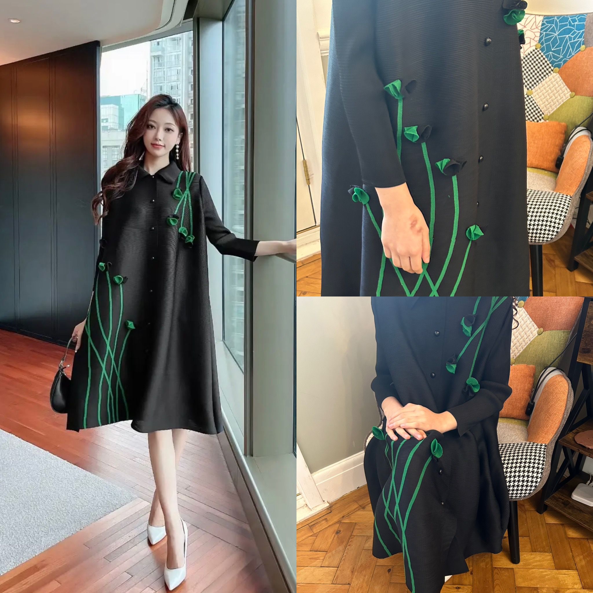 Black 3D Flower Dress