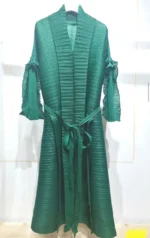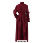 The dress features dark green ruffle,black, lime green and burgundy sleeves and is available in a standard size. The ruffled sleeves add a stylish and feminine touch to the dress, which is a classic and versatile piece that can be dressed up or down for various occasions. The standard size ensures a comfortable and flattering fit for the wearer.