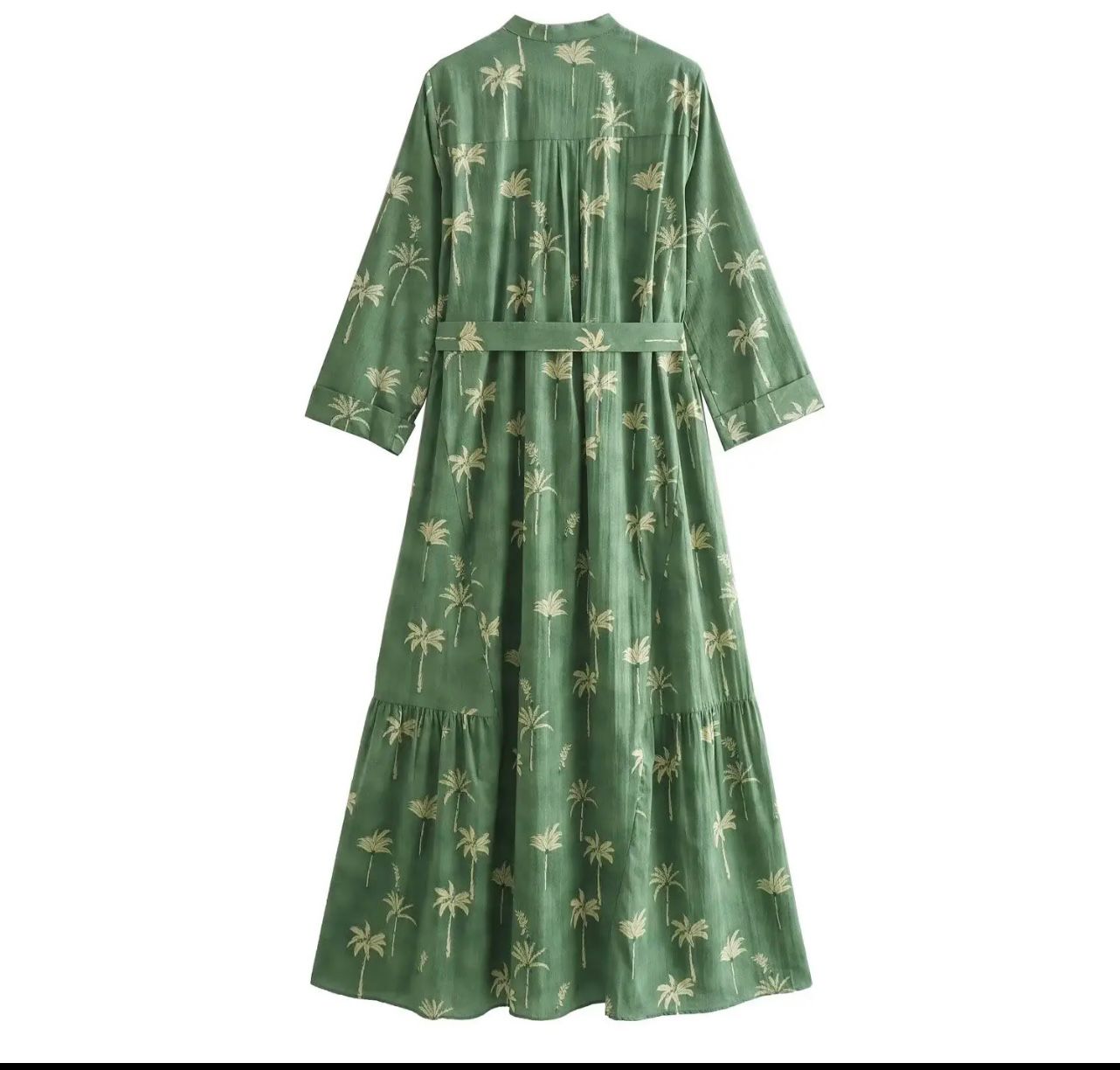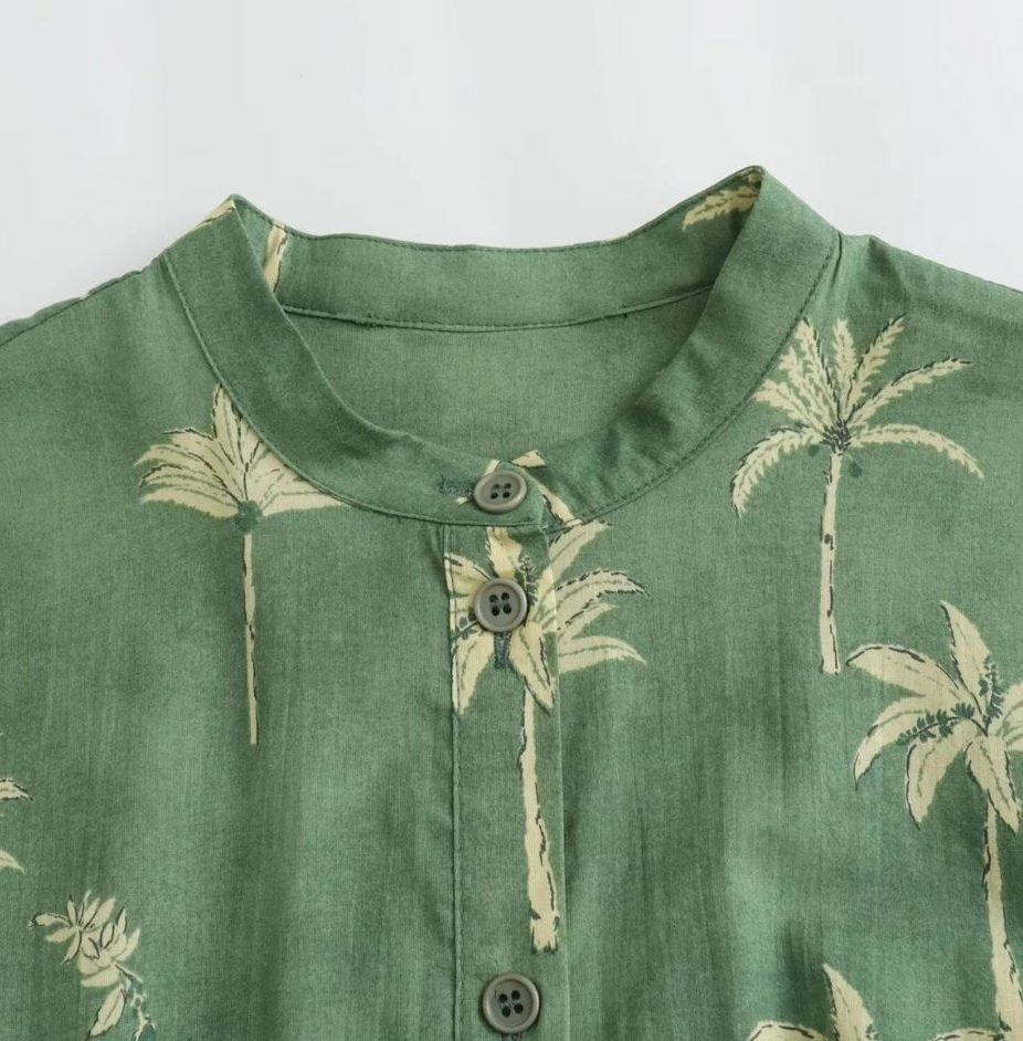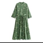 This long shirt dress offers a stylish and versatile outfit. Featuring a flattering long sleeve silhouette with a stand collar, it’s perfect for cooler weather. The dress is printed in a green colorway, adding a touch of personality, and comes with a stand-out belt to cinch your waist and define your figure.