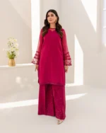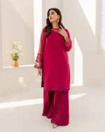 The 3-piece "Ready to Wear" collection features elegant and sophisticated designs for any modern woman. The first piece is an embroidered chiffon shirt, which offers a light and airy feel while still maintaining a polished appearance. The intricate embroidery adds a touch of elegance and sophistication to the shirt. The second piece is a matching embroidered chiffon dupatta, which can be draped over the shirt for a complete and cohesive look. The dupatta is also adorned with the same intricate embroidery, providing a coordinated and put-together appearance. The final piece in the collection is a pair of raw silk trousers, which offer a comfortable and stylish alternative to traditional pants. The raw silk material provides a luxurious and high-end feel, while the tailored fit ensures a flattering and polished look. Overall, this 3-piece collection is perfect for any woman who wants to look and feel her best in a stylish and sophisticated outfit.