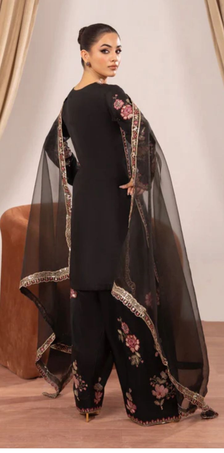A graceful and elegant outfit crafted from luxurious Kattan silk, offering a rich and smooth finish. Paired with a delicate organza dupatta, this ensemble creates a perfect balance of sophistication and style. Ideal for festive gatherings, dinners, and special occasions.