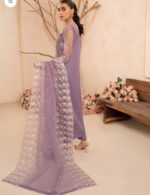 Make a statement with this stunning three-piece purple suit. Featuring a beautifully embroidered organza shirt, comfortable grip trousers, and a matching organza dupatta, this slim-fit ensemble exudes luxury and elegance. Perfect for any special occasion, this suit is a must-have for your wardrobe.