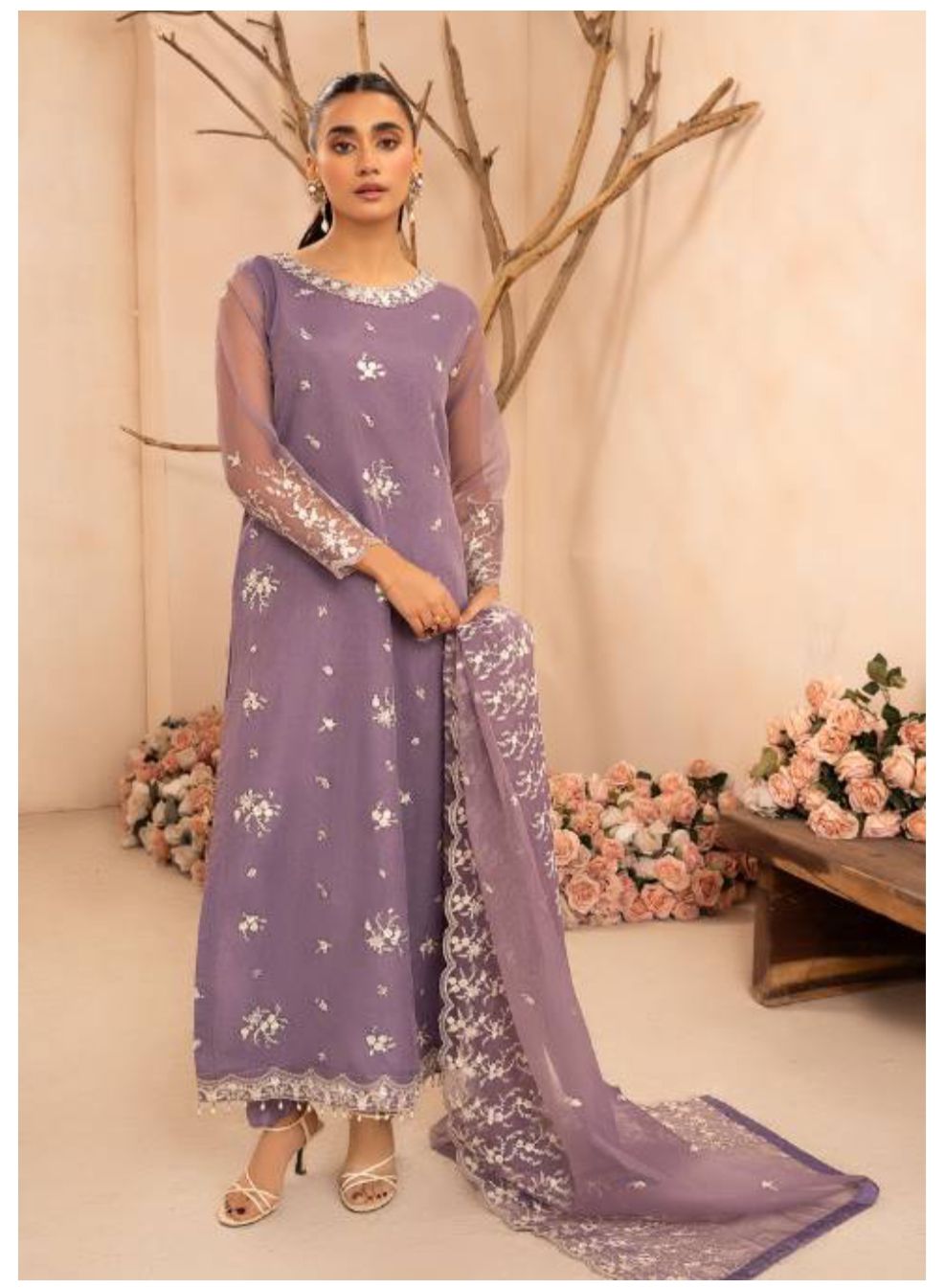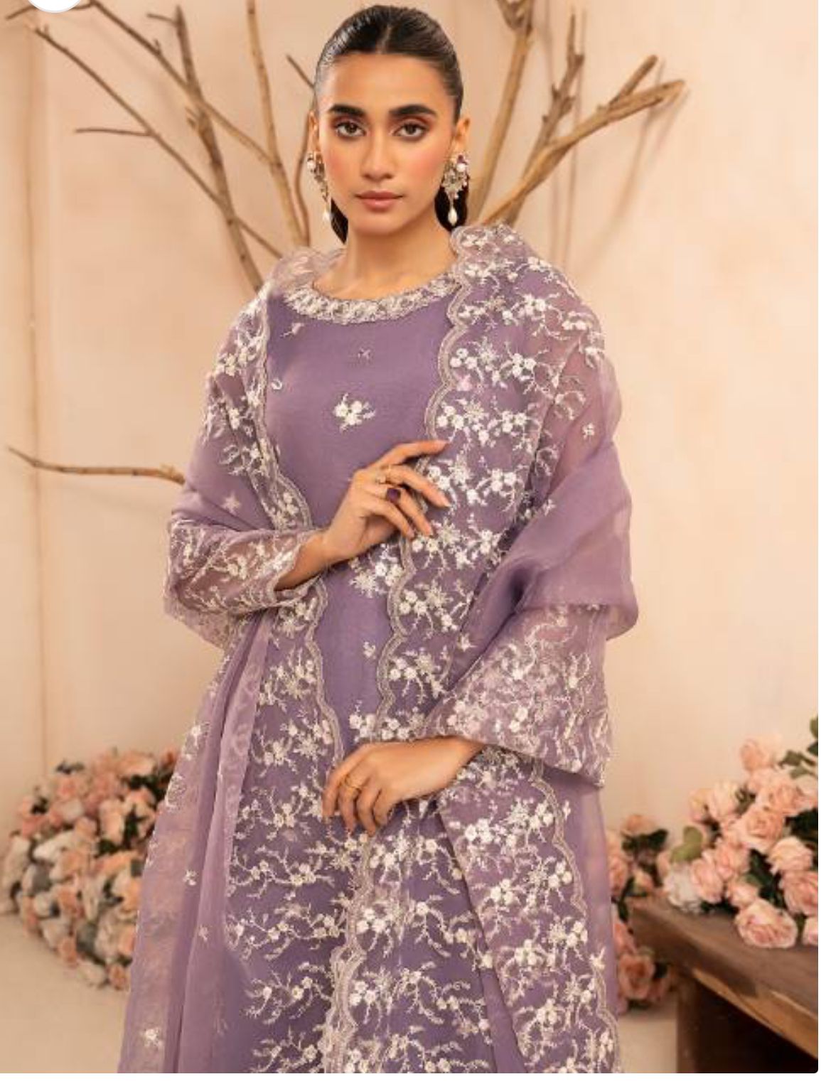 Home Eastern Purple Luxury Embroidered Organza Suit