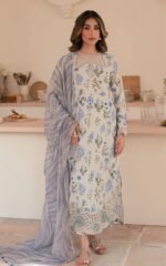 Digital Printed Slub Khaddar 3-Piece Suit with Pashmina Shawl – Medium £45.00