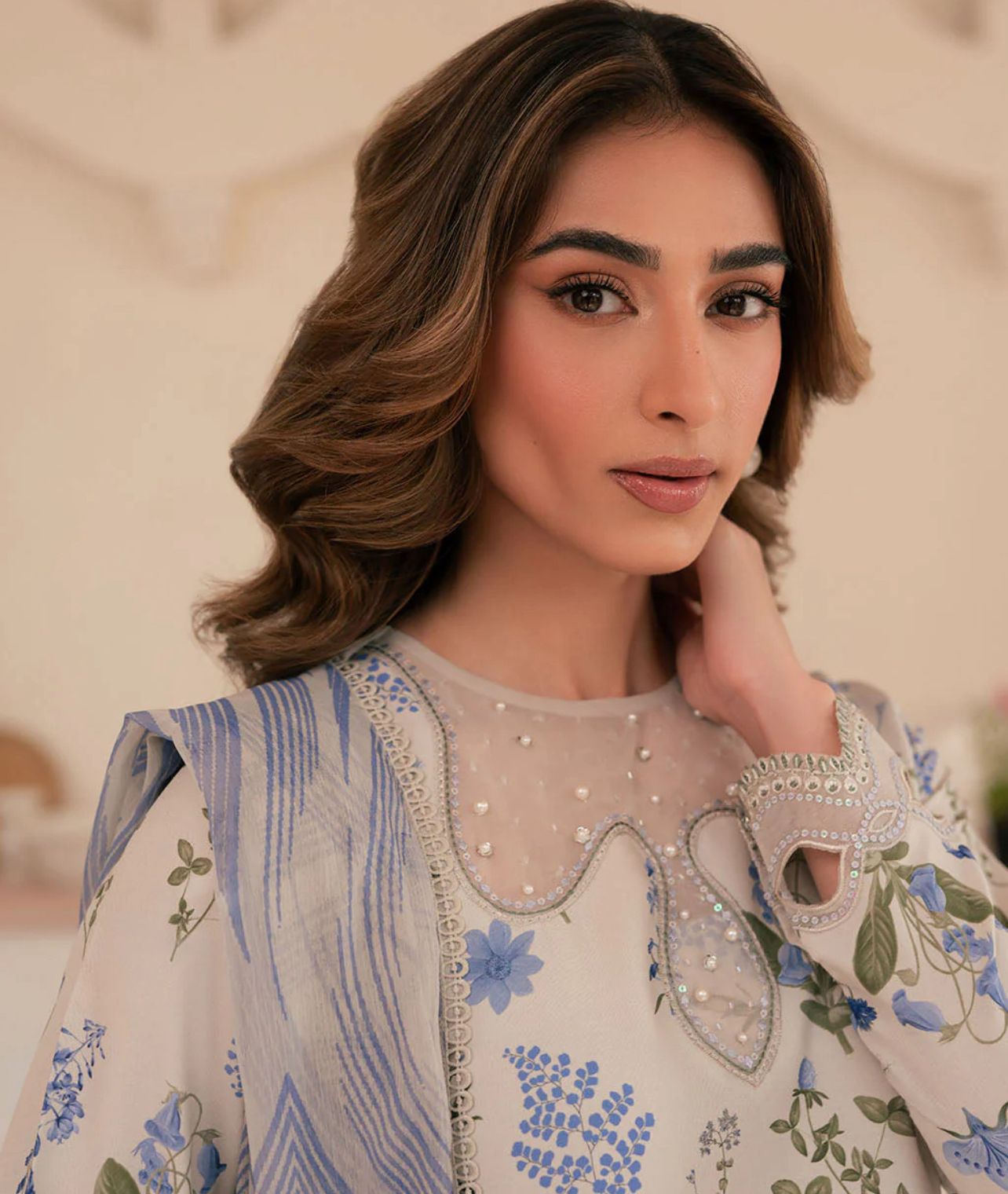 Digital Printed Slub Khaddar 3-Piece Suit with Pashmina Shawl – Medium