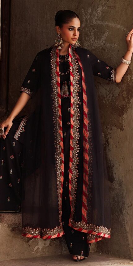 Black Chrizma Raw Silk Embroidered 3-Piece Suit – Small